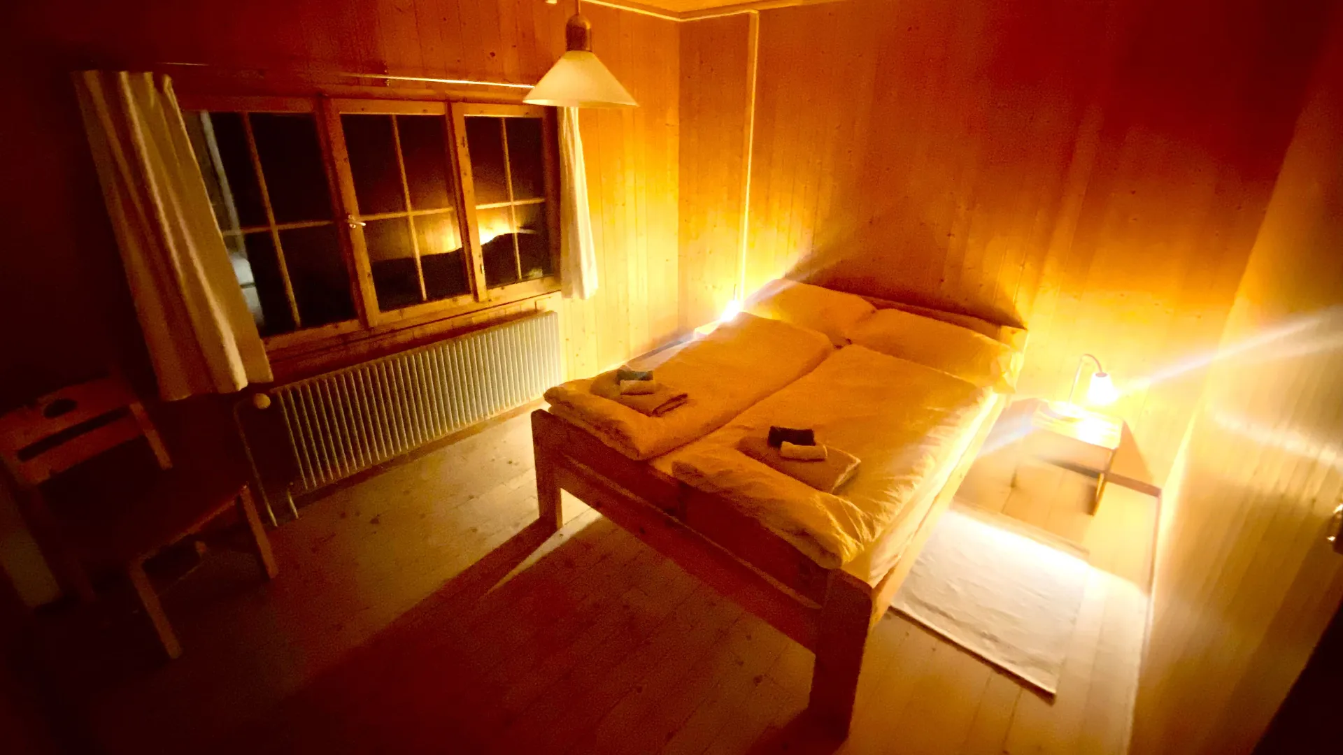 Zimmer für 4-6 Personen (ideal für Familien) mit angrenzendem Toilette und Lavabo. Etagendusche.